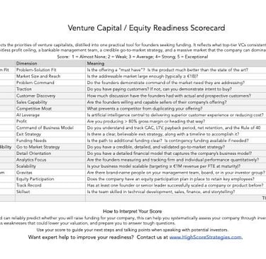 Venture Capital or Equity Readiness Scorecard